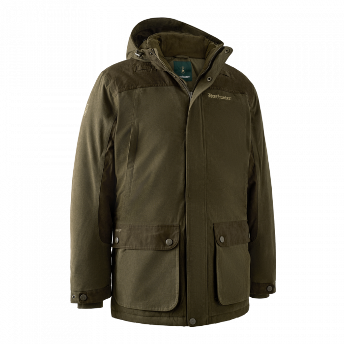 Gebouwd voor koude omstandigheden, omarmt de Eagle Winterjas een klassieke jachtstijl met moderne warmte en functionaliteit. Geïsoleerd met een combinatie van ademend mesh en gewatteerde voering, is de jas bovendien wind- en waterdicht dankzij het Deer-Tex® Performance Shell-membraan, dat een comfortabel binnenklimaat garandeert voor de actieve jager onder alle weersomstandigheden. Kunstsuède details versterken de klassieke jachtstijl en de afneembare capuchon biedt flexibiliteit voor elke persoonlijke voorkeur.