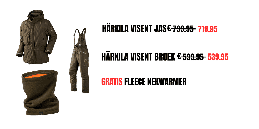 Karoe heeft voor u een speciale setprijs voor de Härkila Visent lijn. U krijgt hier korting op de jas en korting op de broek plus gratis een heerlijk warme fleece nekwarmer!