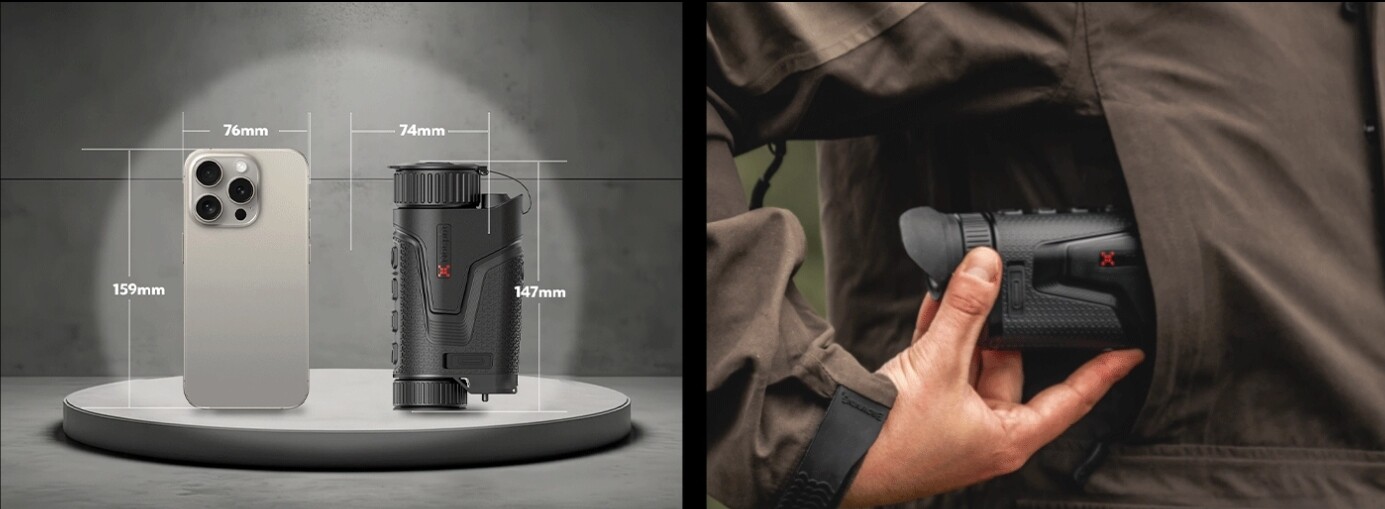 De Lumi LRF-serie maakt een krachtige eerste indruk dankzij zijn uitgebreide functies. Zelfs met de geïntegreerde afstandsmeter (LRF) blijft het toestel verrassend compact — kleiner dan een mobiele telefoon. Aangedreven door intern ontwikkelde sensortechnologie en geavanceerde Reality+ AI-beeldalgoritmen levert het uitzonderlijke beeldkwaliteit die uitblinkt in zijn klasse, terwijl het uiterst draagbaar en gebruiksvriendelijk blijft.