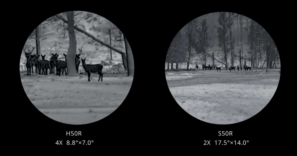 De zelfontwikkelde NETD ≤15mK sensor (640×512, 12μm) garandeert stabiele prestaties en hoge beeldkwaliteit. Dierensilhouetten, anatomie en gedragspatronen worden duidelijk zichtbaar, zelfs onder uitdagende omstandigheden. Met een detectiebereik tot 2600 meter en variabele vergroting van 4× tot 40× biedt de VISTA H50R een ongeëvenaarde observatie-ervaring—dag en nacht.
